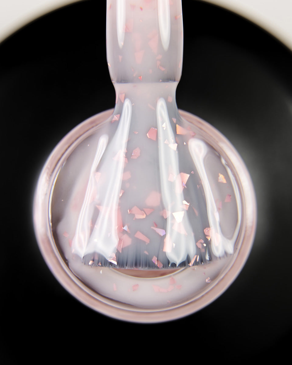 DARK Pro Base Potal 06, 15 ml is a self-leveling base infused with decorative foil flakes—perfect for quick, dimensional salon designs without additional steps.