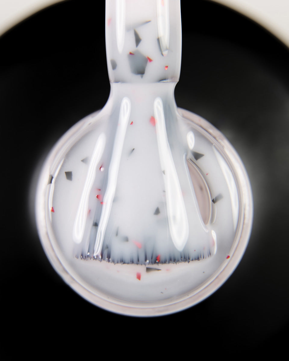 DARK Pro Base Potal 08, 15 ml is a self-leveling base infused with decorative foil flakes—perfect for quick, dimensional salon designs without additional steps.