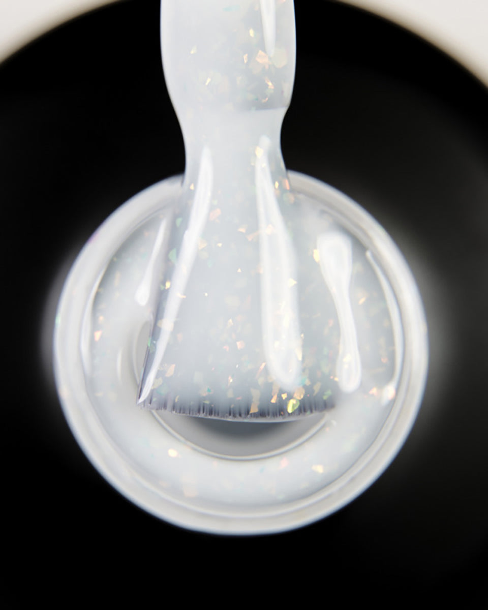 DARK Pro Base Potal 29, 15 ml is a self-leveling base infused with decorative foil flakes—perfect for quick, dimensional salon designs without additional steps.