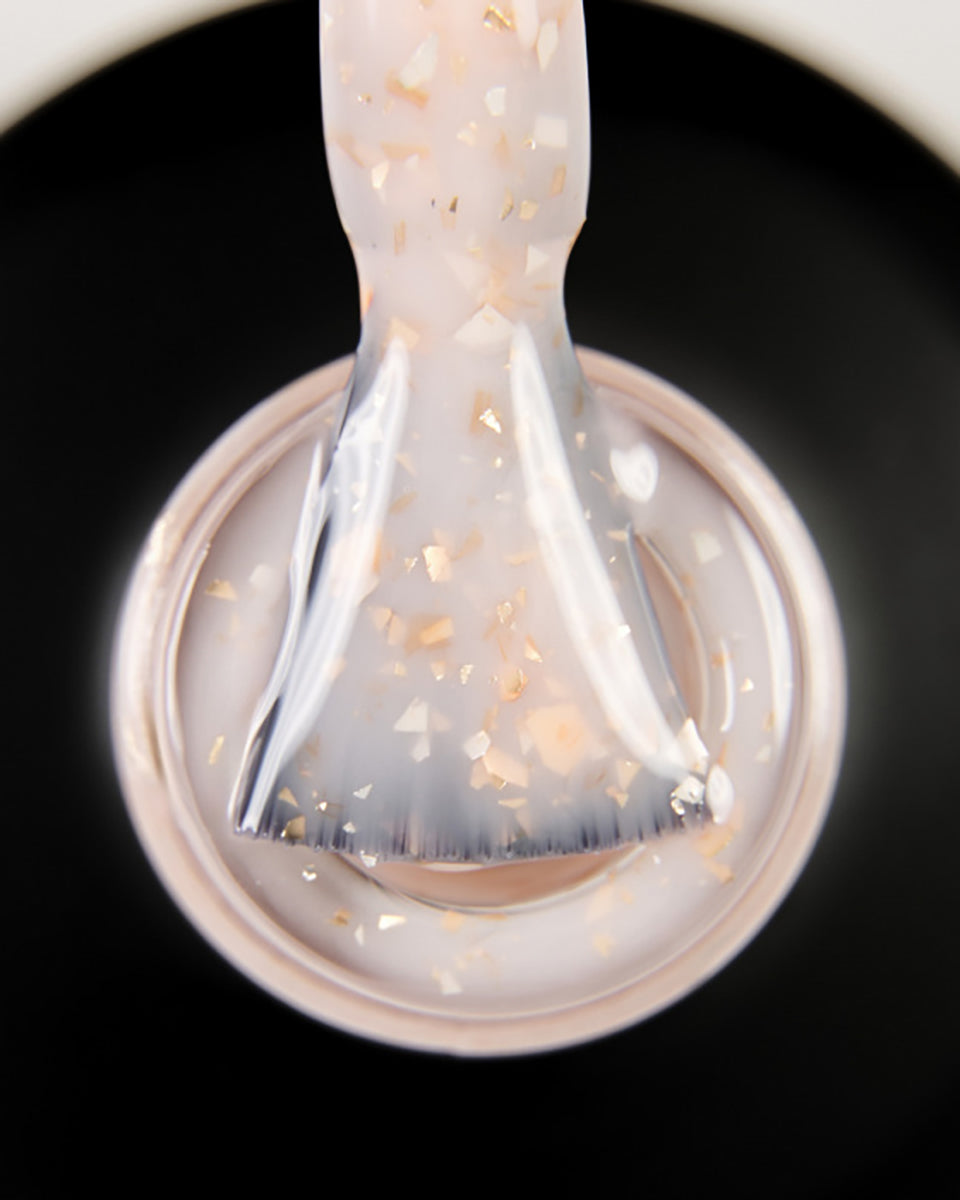 DARK Pro Base Potal 40, 15 ml is a self-leveling base infused with decorative foil flakes—perfect for quick, dimensional salon designs without additional steps.