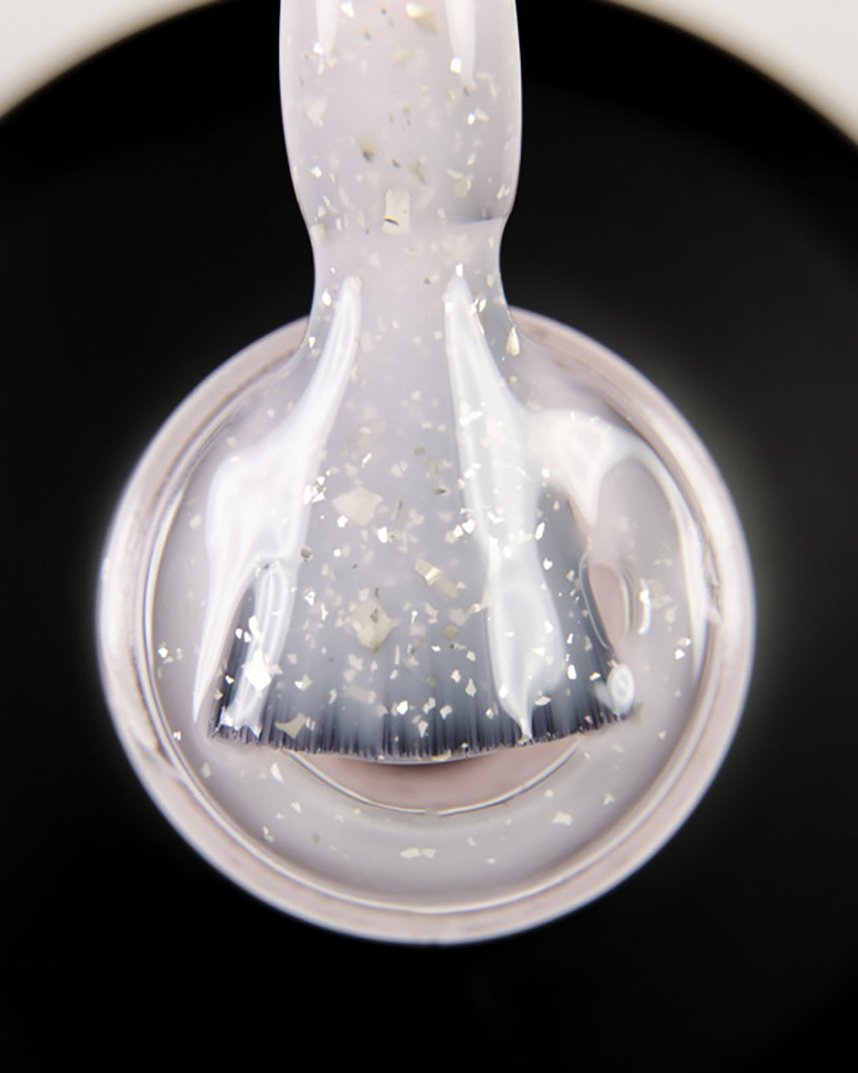 DARK Pro Base Potal 43, 15 ml is a self-leveling base infused with decorative foil flakes—perfect for quick, dimensional salon designs without additional steps.