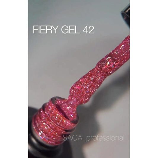 Гель-лак Saga Fiery №42 Berry Pink со светоотражающими частичками и золотыми хлопьями, 9 мл
