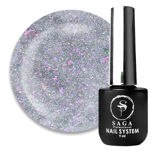 Гель-лак Saga Fiery №43 Серый со светоотражающими частицами, 9 мл